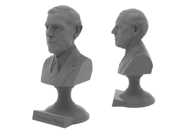 This 3D printed portrait bust of Woodrow Wilson is the perfect addition to any history buff's collection. Printed with intricate detail, this bust captures the likeness of the 28th President of the United States. Standing on a sturdy pedestal plinth, this bust is a beautiful display piece for any desk or bookshelf. Whether you are a fan of Wilson's progressive reforms or simply admire his leadership during World War I, this bust is a must-have for anyone who wants to honor his legacy. Order now and own a piece of history today!
