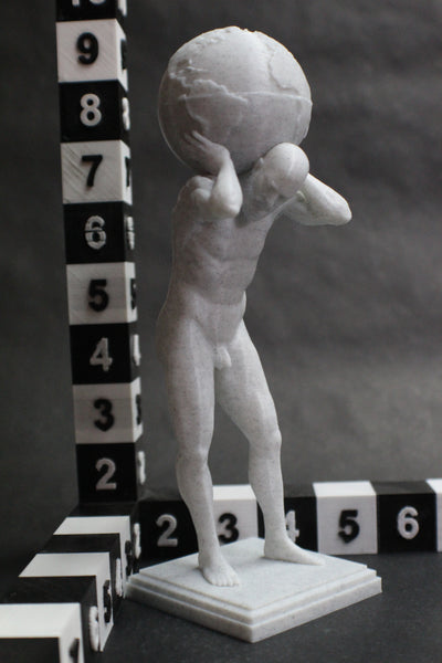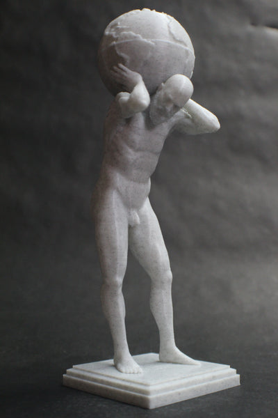 This is an original sculpt of the Greek Titan Atlas, holding up the world. The globe has all of the surface topology of the earth, and the statue itself has an outstanding level of detail. This is perfect for the office, library, or any space that can use a touch of art and class.