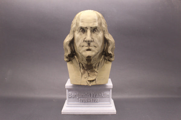 Benjamin Franklin USA Founding Father Sculpture Bust on Box Plinth