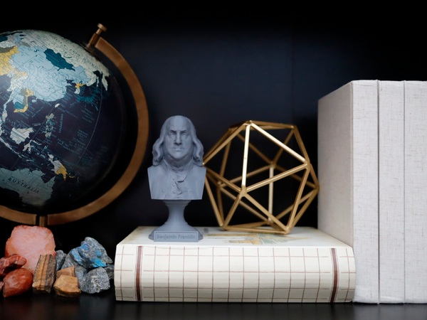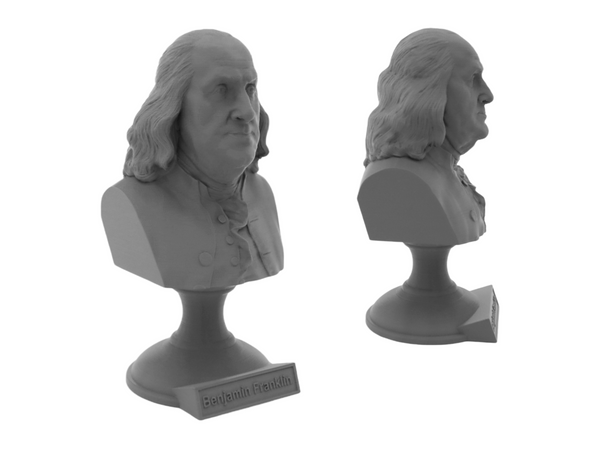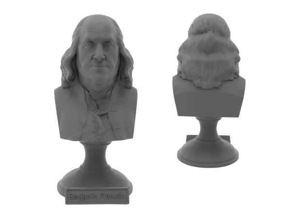 Own a piece of American history with our 3D printed portrait bust of Benjamin Franklin, one of America's founding fathers. The detailed bust is mounted on a pedestal plinth and features a lifelike interpretation of the statesman, scientist, and inventor. Each piece is individually printed and hand-assembled, making it a unique addition to any collection of Americana. Show your appreciation for the contributions of Benjamin Franklin by adding this bust to your home or office today.