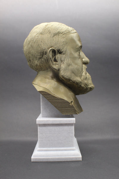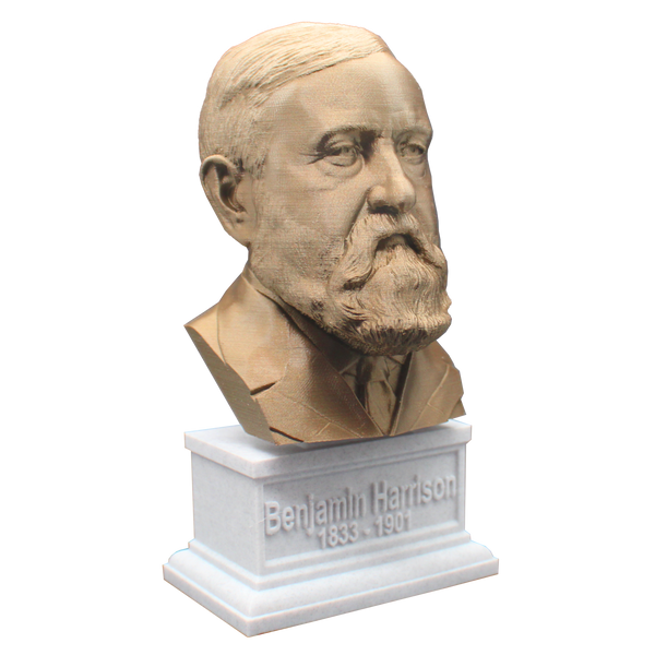 Bring a touch of 19th century presidential history to your collection with this stunning 3D printed portrait bust of Benjamin Harrison. Made from high-quality PLA material, this realistic bust interprets Harrison's distinctive features and adds a touch of historical elegance to your space. The accompanying box plinth displays his name and lifetime on the front and his dates in office on the back. Choose from 5 different base colors for both the bust and the box plinth to personalize this piece. Get your 3D printed portrait bust of Benjamin Harrison today and add a unique piece of presidential history to your decor.