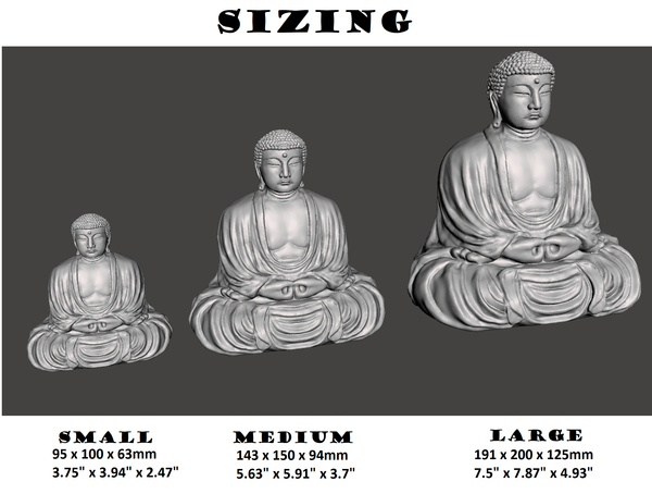 This is a 3D printed replica of the Buddha monument located in Kamakura, Japan (AKA Taiizan Kotokuin Shojosenji, or Kotoku-in) . It is printed in high resolution, capturing his expression, hair, and the creases in his clothing. It's amazing how the model does such an effective job of recreating the stone texture, and this is captured in the print exceptionally well.