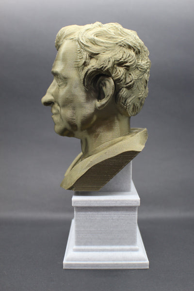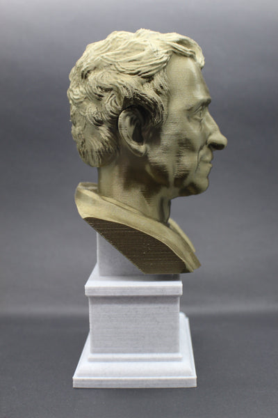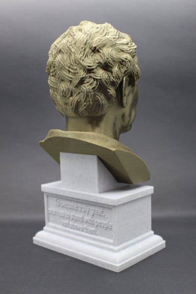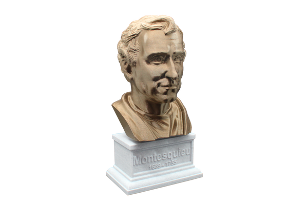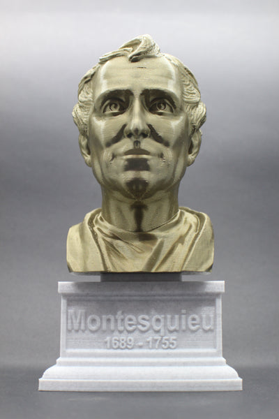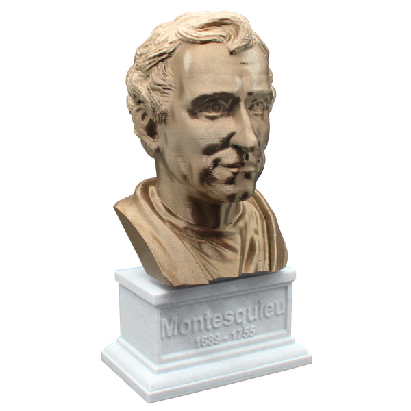 Bring history to life with our realistic 3D printed portrait bust of Montesquieu in durable PLA material. The box plinth features the philosopher's name and lifetime on the front, and his inspiring quote, "To become truly great, one has to stand with people, not above them," on the back. Choose from 5 different base colors for the bust and box plinth to personalize your display. A unique addition to any collection, history lover's library or office decor.