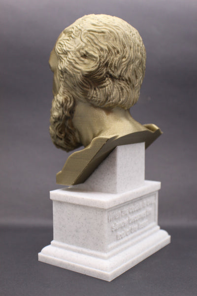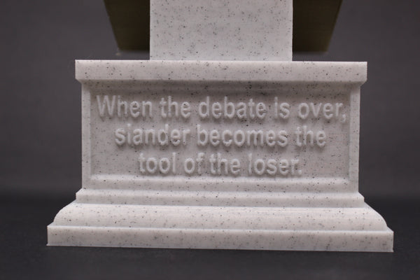 Bring the wisdom of Socrates into your home with our realistic 3D printed portrait bust in PLA. This beautiful piece interprets the essence of one of the greatest philosophers of all time. The box plinth, featuring the name and lifetime on the front, showcases a poignant quote on the back: "when the debate is over, slander becomes the tool of the loser." Choose from 5 different base colors for the bust and the box plinth to create a unique addition to your collection. Immerse yourself in the teachings of Socrates and elevate your space with this stunning bust today!