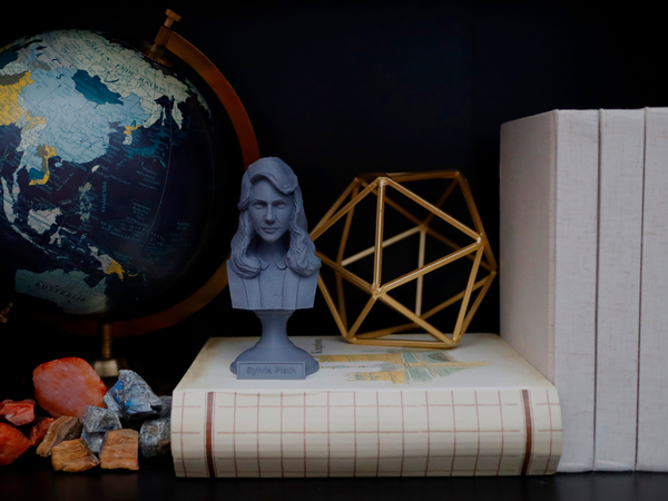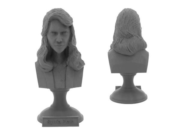 Own a piece of literary history with this 3D printed portrait bust of Sylvia Plath, mounted on a pedestal plinth. Perfect for any book lover or fan of the iconic poet and novelist. Celebrate Plath's legacy and bring her hauntingly beautiful works to life with this intricate and detailed bust, capturing her likeness in stunning detail. Order now and add a touch of literary elegance to your collection.