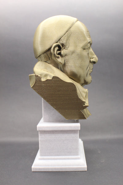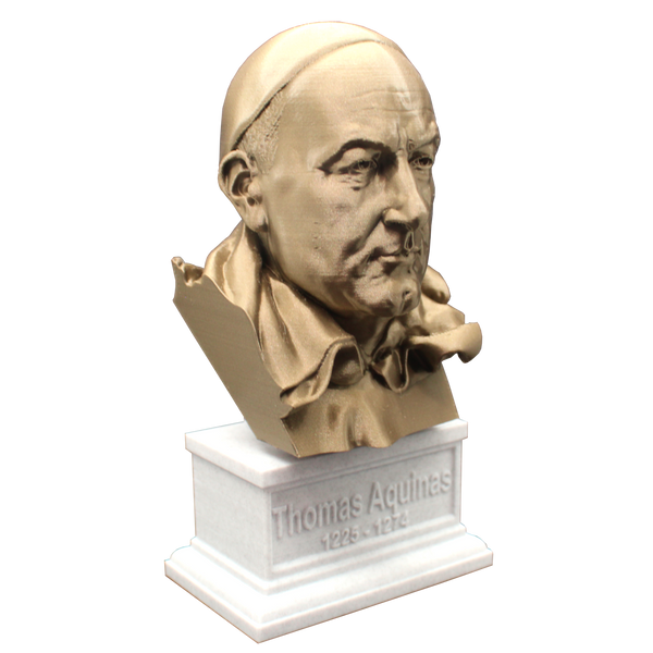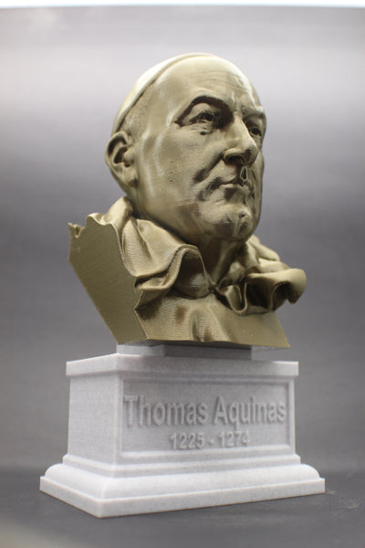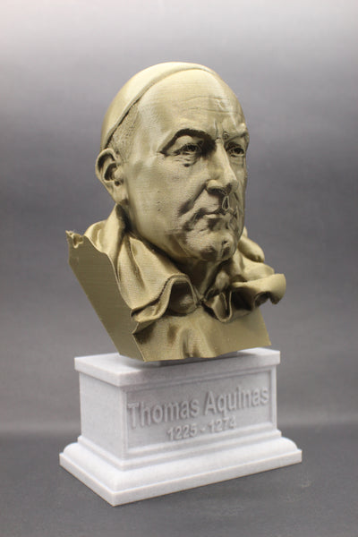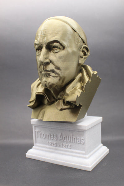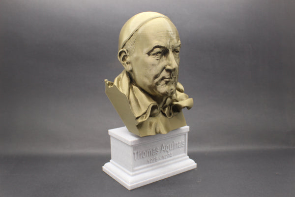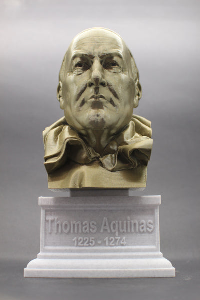 Celebrate the legacy of Thomas Aquinas with our realistic 3D printed portrait bust in PLA. This exquisite piece interprets the essence of one of the greatest philosophers and theologians of the Catholic Church. The box plinth, featuring the name and lifetime on the front, showcases a thought-provoking quote on the back: "I would rather feel compassion than know the meaning of it." Choose from 5 different base colors for the bust and the box plinth to create a unique addition to your collection. Embrace the wisdom of Thomas Aquinas and elevate your space with this stunning bust today!