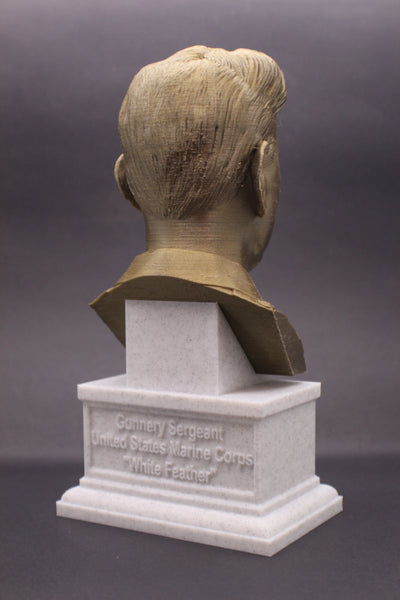 Carlos "White Feather" Hathcock Legendary US Marine Corps Marksman Sniper Sculpture Bust on Box Plinth