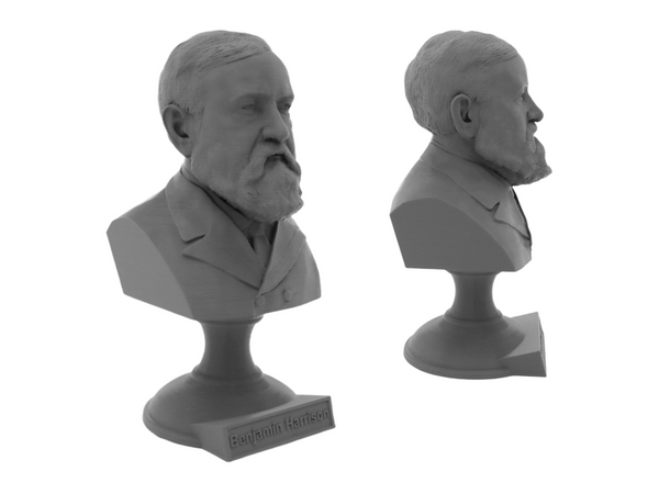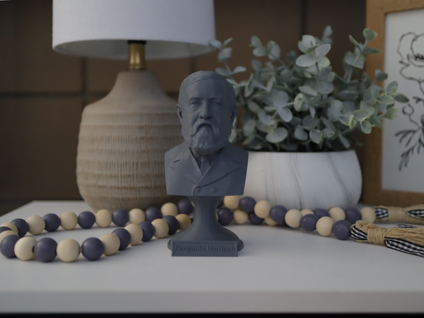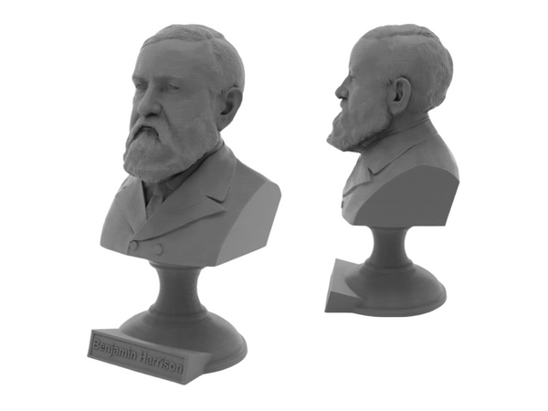Get a piece of American history for your home or office with our 3D printed portrait bust of Benjamin Harrison, the 23rd President of the United States. The detailed bust is mounted on a pedestal plinth and features a lifelike interpretation of Harrison. Each piece is individually printed and hand-assembled, making it a unique addition to any collection of Americana. Show your appreciation for the history of the American Presidency by adding this bust to your home or office today.