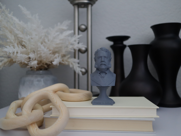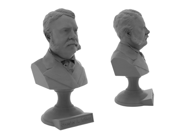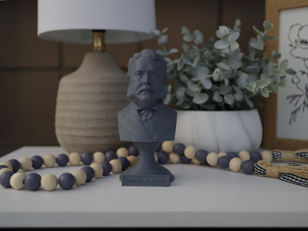 Honor the 21st President of the United States, Chester A. Arthur, with our 3D printed portrait bust. The detailed bust is mounted on a pedestal plinth and features a lifelike interpretation of Arthur. Each piece is individually printed and hand-assembled, making it a unique addition to any collection of historical figures. Show your appreciation for the service and contributions of Chester A. Arthur to the United States by adding this bust to your home or office today.