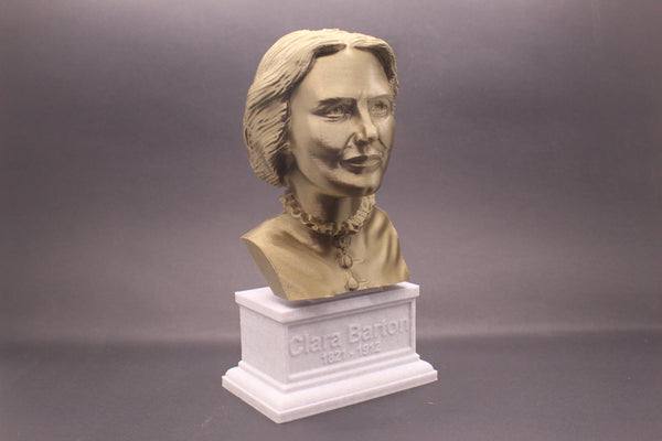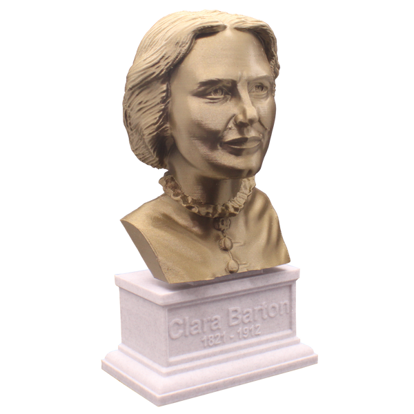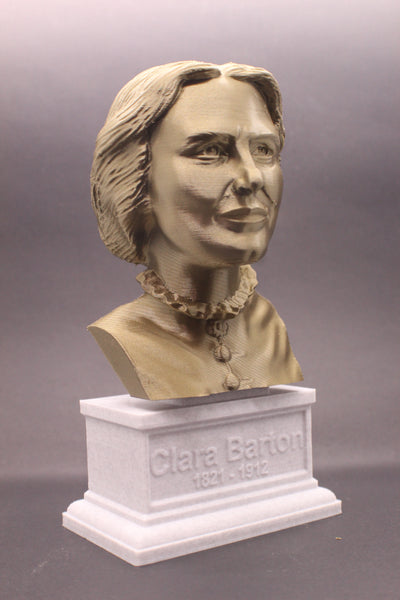 Introducing our realistic 3D printed portrait bust of Clara Barton, made from high-quality PLA material. The box plinth displays the name and lifetime of Barton on the front, and a inspiring quote on the back that reads: "The surest test of discipline is its absence." Enhance your collection or office with this stunning bust, available in 5 different base colors for both the bust and the box plinth.
