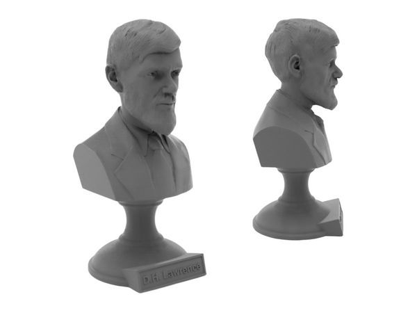 Honor the celebrated English novelist, poet, and playwright, D.H. Lawrence, with our 3D printed portrait bust. The detailed bust is mounted on a pedestal plinth and features a lifelike interpretation of Lawrence. Each piece is individually printed and hand-assembled, making it a unique addition to any collection of influential figures in literature. Show your appreciation for the enduring legacy of D.H. Lawrence and his literary works such as Lady Chatterley's Lover, Sons and Lovers, and The Rainbow by adding this bust to your home or office today.