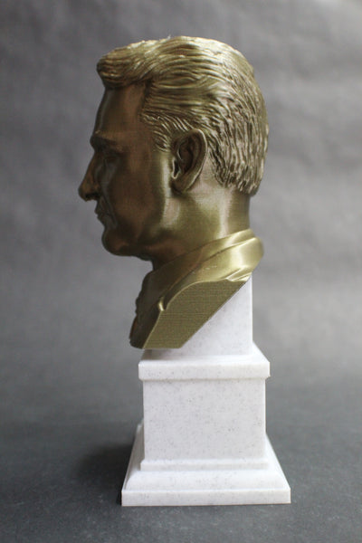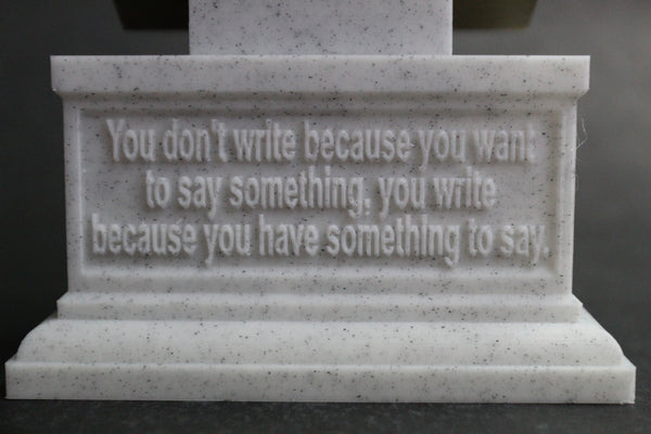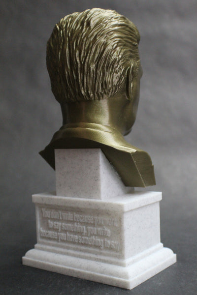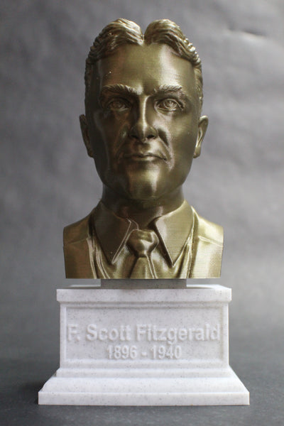 Bring a touch of literary greatness to your home or office with our 3D printed portrait bust of F. Scott Fitzgerald. Made from high-quality PLA, this bust offers a realistic depiction of one of the greatest writers of the 20th century. The accompanying box plinth displays Fitzgerald's name and lifetime on the front, and a memorable quote from the author on the back: "You don't write because you want to say something, you write because you have something to say." Choose from 5 different base colors for the bust and the box plinth to create the perfect display piece that complimentes your style and decor. Order now and add a piece of literary history to your collection.