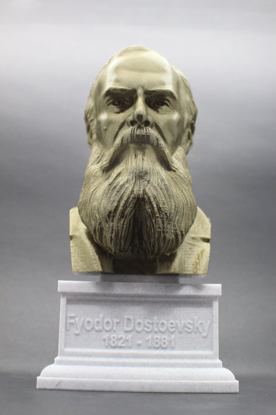 This is a unique and timeless addition to your collection! Our realistic 3D printed portrait bust of Fyodor Dostoevsky is made of high-quality PLA material. The bust sits atop a box plinth with the name and lifetime of the author on the front, and the quote "Man is sometimes extraordinarily, passionately, in love with suffering" on the back. Choose from 5 different base colors for both the bust and the box plinth to create a personalized piece that perfectly fits your style. This portrait bust is a perfect gift for fans of classic literature, or for those who appreciate the wisdom and insight of one of the greatest authors of all time.