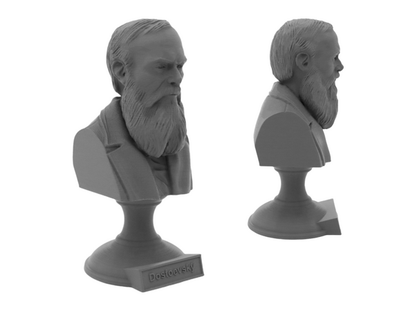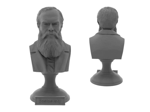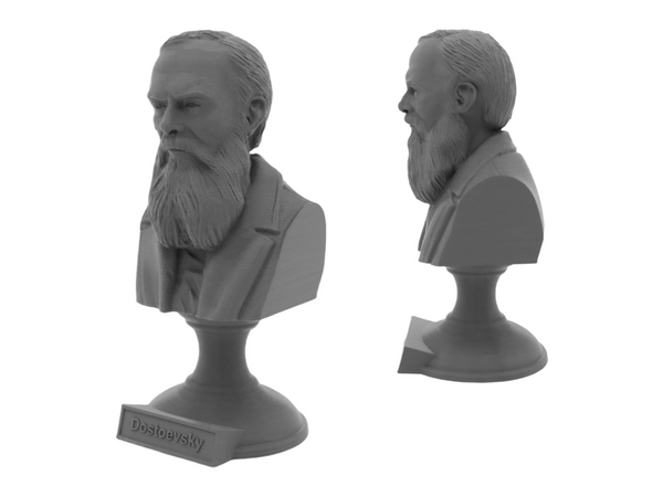 Enhance your book collection or home office with our 3D printed portrait bust of Fyodor Dostoevsky. This detailed and realistic bust sits on a pedestal plinth, adding a touch of literary greatness to any space. A must-have for fans of Dostoevsky and his works such as Crime and Punishment and The Brothers Karamazov. Order now and pay homage to one of the greatest novelists of all time.