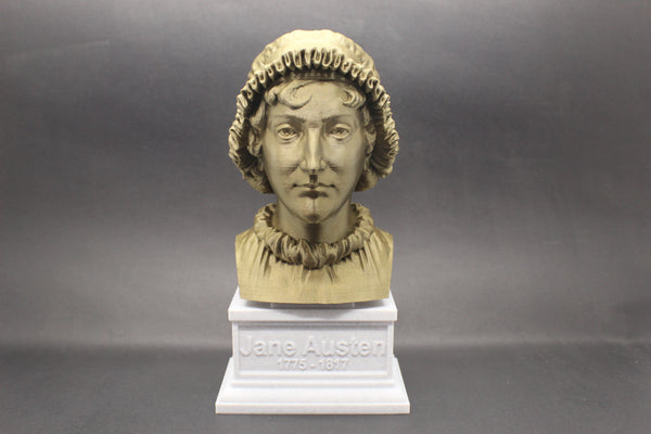 Jane Austen, Famous English Novelist, Sculpture Bust on Box Plinth