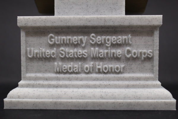 John Basilone Legendary US Marine Corps Medal of Honor Winner Sculpture Bust on Box Plinth