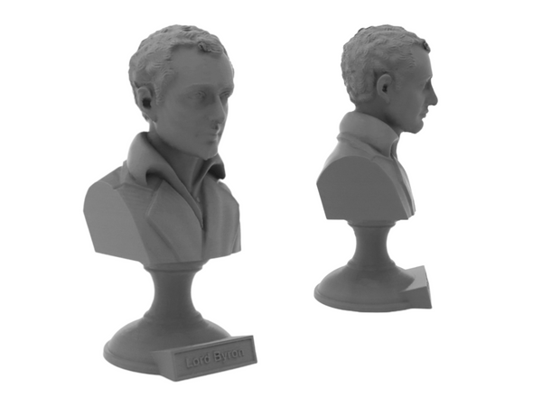 Introducing the 3D printed portrait bust of Lord Byron, the legendary Romantic poet, on a pedestal plinth. Captivating and detailed, this piece is the perfect addition to any literary enthusiast's collection. Handcrafted with precision and care, the bust captures Lord Byron's charismatic and enigmatic spirit. Place it on your bookshelf or in your study for a touch of classic elegance. Get your limited edition Lord Byron 3D printed bust today!