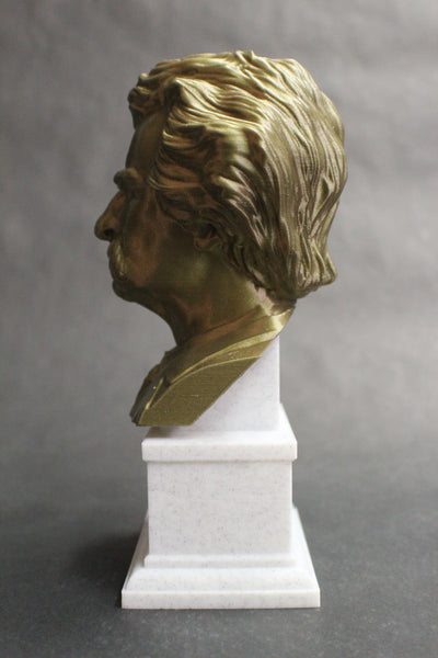 Mark Twain (Samuel Clemens), American Writer, Humorist, Entrepreneur, and Lecturer, Sculpture Bust on Box Plinth