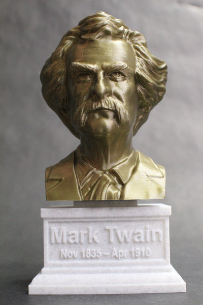 Celebrate the wit and wisdom of Mark Twain with our realistic 3D printed portrait bust. Skillfully crafted with high-quality PLA material, this bust accurately interprets the likeness of the famous author and humorist. The accompanying box plinth displays the name and lifetime of Mark Twain on the front and the thought-provoking quote "whenever you find yourself on the side of the majority, it is time to pause and reflect" on the back. Add a touch of personalization to your bust by choosing from 5 different base colors for both the bust and box plinth. Get your 3D printed Mark Twain portrait bust today and bring the legacy of one of America's greatest writers into your home or office.