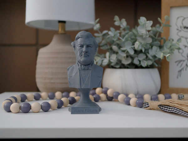 Show your appreciation for American history with this stunning 3D printed portrait bust of Millard Fillmore. This impressive bust sits on a sturdy pedestal plinth, making it the perfect addition to any office, library, or home. Capturing the essence of Fillmore's legacy, this 3D print is an excellent conversation starter and a great way to honor one of the country's most influential presidents. Get your Millard Fillmore bust today and bring a touch of history to your space!