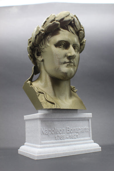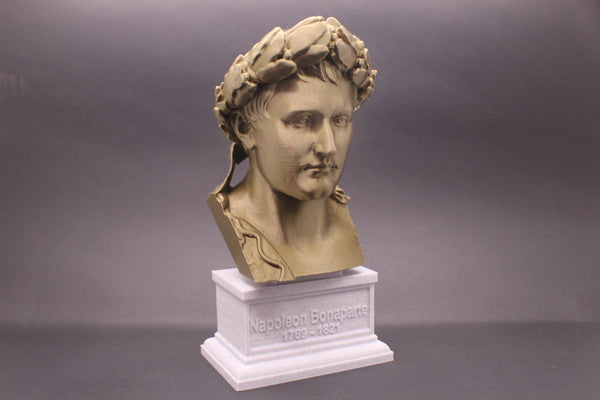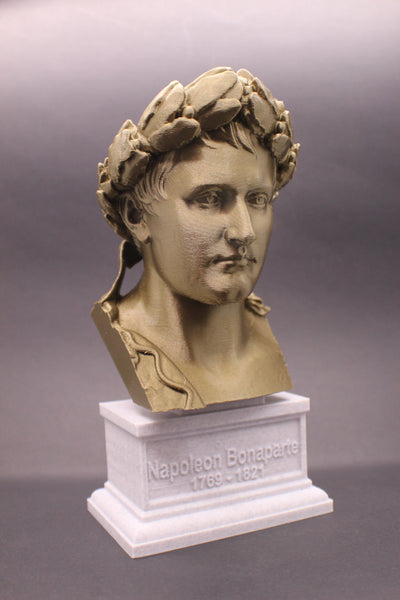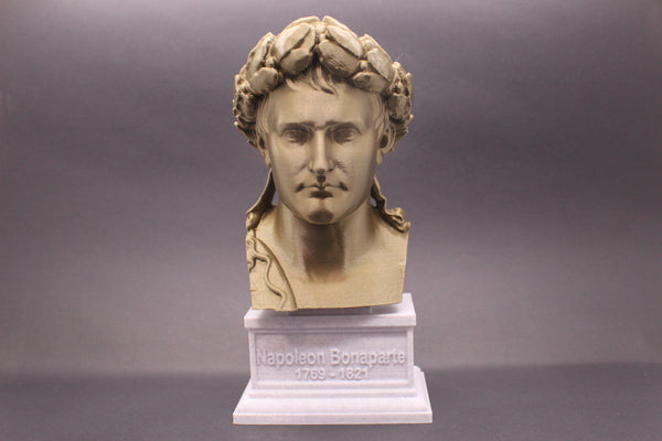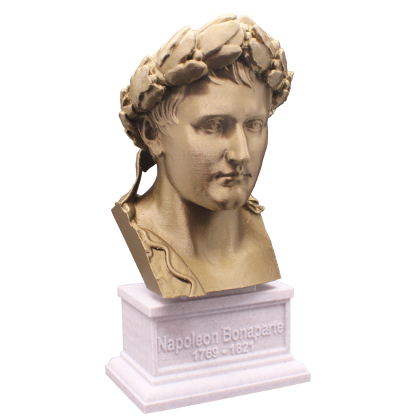 Bring history to life with our 3D printed portrait bust of Napoleon Bonaparte. Made from high-quality PLA material, this bust features a realistic interpretation of the legendary military and political leader. The accompanying box plinth displays his name and lifetime on the front and a memorable quote on the back: "The people to fear are not those that disagree with you, but those who disagree and are too cowardly to let you know." Choose from 5 different base colors to complete the look of this unique piece of art. A must-have for history enthusiasts and collectors alike.