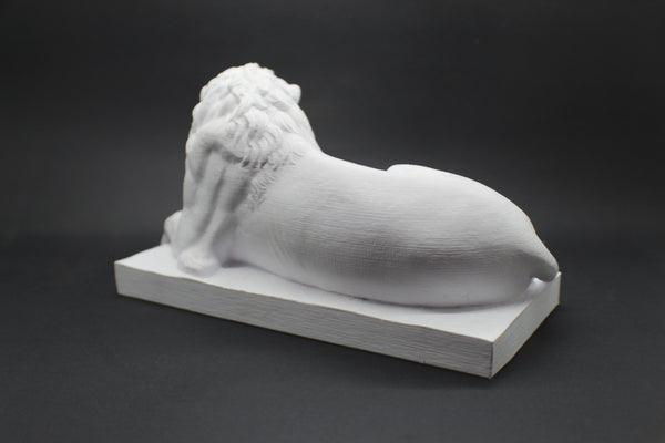 This 3D printed replica of The Recumbent Lion, after the original model from 1825, Thorvaldsen museum (Copenhagen, Denmark).