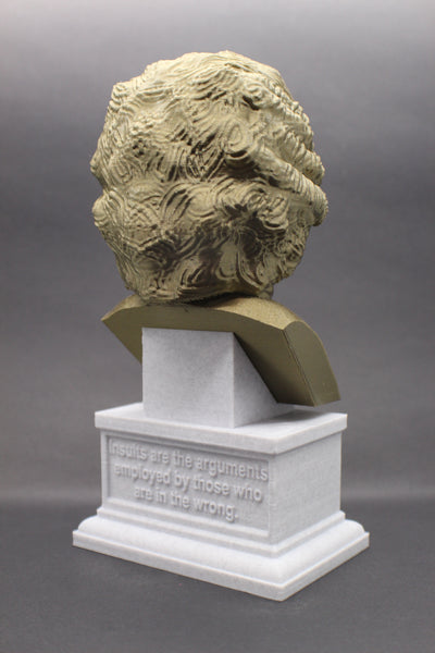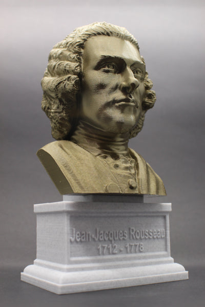 Bring the timeless wisdom of Jean-Jacques Rousseau into your home or office with our realistic 3D printed portrait bust. Made from high-quality PLA material, this bust accurately interprets the likeness of Rousseau and sits atop a stylish box plinth that displays his name and lifetime on the front. On the back of the plinth, you'll find one of Rousseau's most memorable quotes: "Insults are the arguments employed by those who are in the wrong." Choose from 5 different base colors for both the bust and the box plinth to create a unique and personalized piece that perfectly suits your decor. Order your 3D printed portrait bust of Rousseau today!