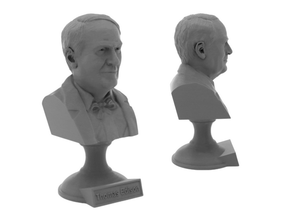 This 3D printed portrait bust on a pedestal plinth is a stunning interpretation of Thomas Edison, one of the most famous inventors of all time. The intricate 3D printing process captures every detail of Edison's likeness, making this bust a true work of art. Displayed on a classic pedestal plinth, this bust is the perfect addition to any home, office, or historical collection. Whether you're a history buff, an admirer of Edison's work, or simply appreciate beautiful pieces of art, this bust is sure to impress. Get your hands on this limited edition bust today!